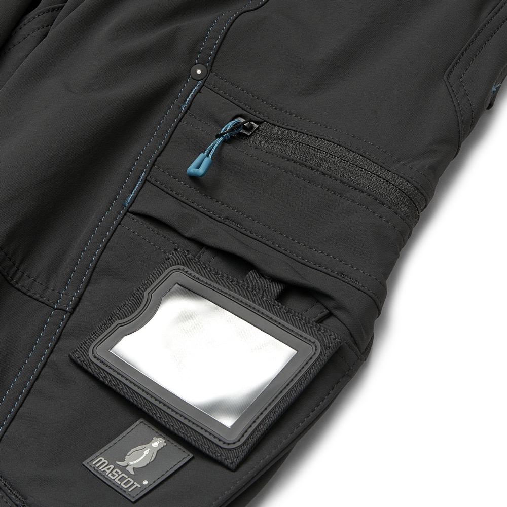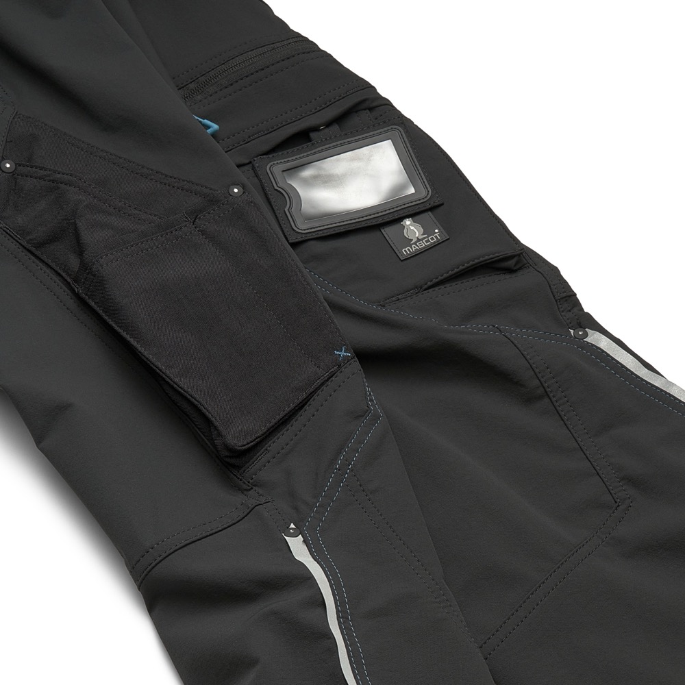 Много карманов: передние, задние, набедренный карман для телефона со встроенным карманом для ID-карты, съемный карман с D-кольцом для пропуска или удостоверения. карман для рулетки из материала CORDURA® с дополнительными отделениями.