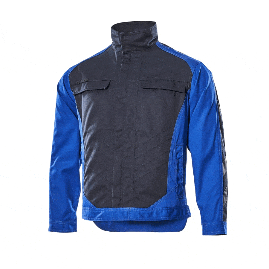 D-кольцо, регулируемая петля для молотка и крепление для инструментов на талии. Высокий воротник и скрытые кнопки.